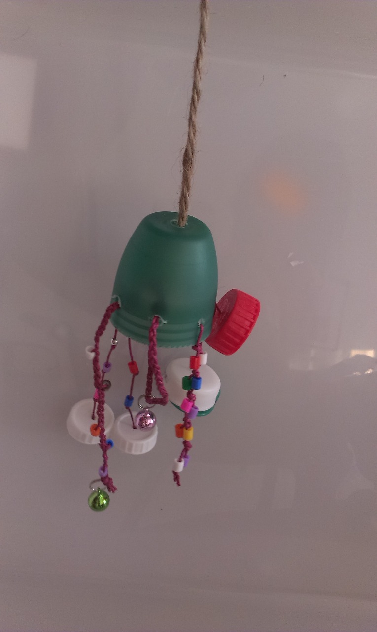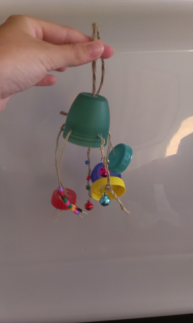 Y ya tenemos listo un juguete que les encanta a nuestros pajarines, sobre todo para destrozarlo.
